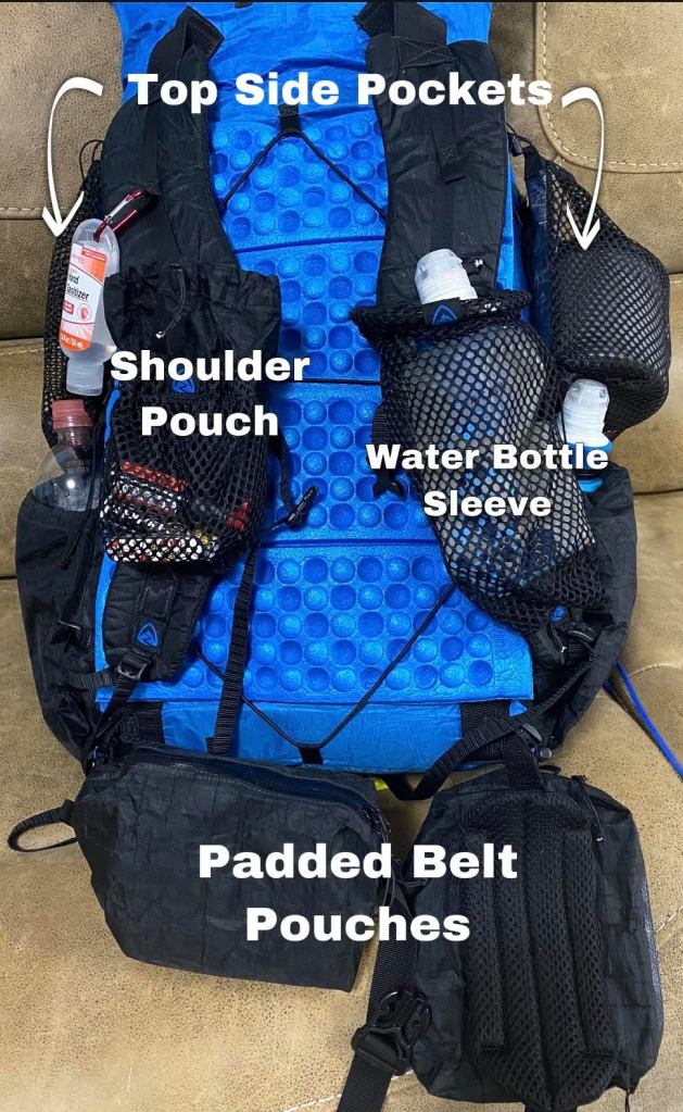 I will be using the ZPACKS Nero 38L backpack. They are ultralight, weighing only 10.7oz. I really enjoy the ability to configure this pack. I added a pack liner to help keep my gear dry. I also added a shoulder pouch, water bottle sleeve, top side pockets, and a pair of padded belt pouches. I have been hiking with this pack for a few months now. Although it is frame-less, I still find it comfortable. With all my additions to the pack, it now weighs 1.02 lbs. Very remarkable.